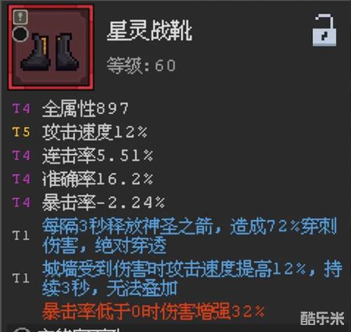 星灵战靴,放弃暴击拿稳定32增伤;