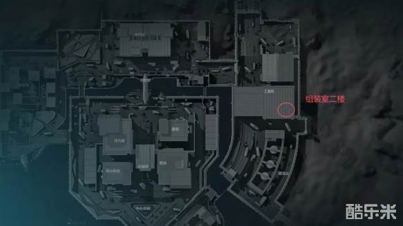 4、航天基地密码门在图下位置右侧工业区中组装室二楼。