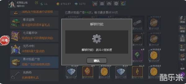 战斗界面左上角有战斗加速,开始最高1.6。看完20次广告后开2倍速!