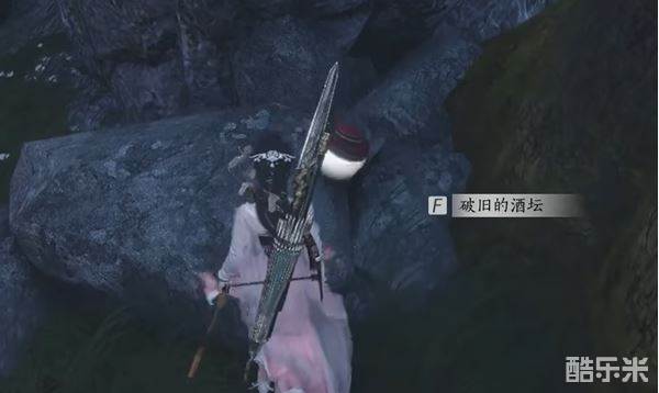 2、操作:前往不羡仙的九曲石船,在九曲石船和大树间找到破旧的酒坛,探查酒坛,完成追溯。