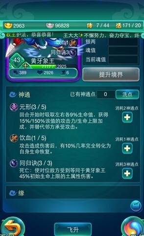 灵感大王的三个神通分别是元形,魔煞,还魂,这其中,还魂就不用多说了,复活类技能,适当的提高了灵感大王的续航能力,不过鉴于目前战斗回合的限制,其实实用性还是很有限的,特别是前期普遍攻击不高的情况下,死亡往往需要耗费多个回合,这样复活就更加没有意义了。