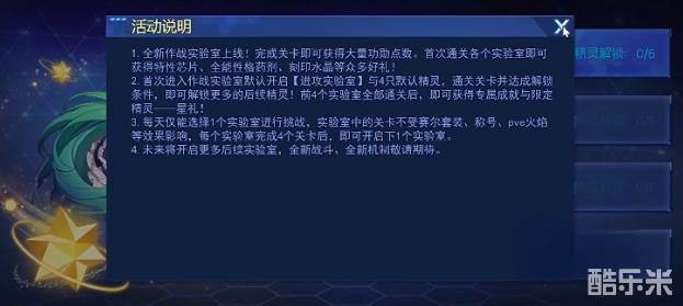 每天只能进入一个实验室进行挑战,并且在关卡中是不可以使用赛尔套装,或者是称号等效果,成功通过挑战后才可开启下一个实验室。