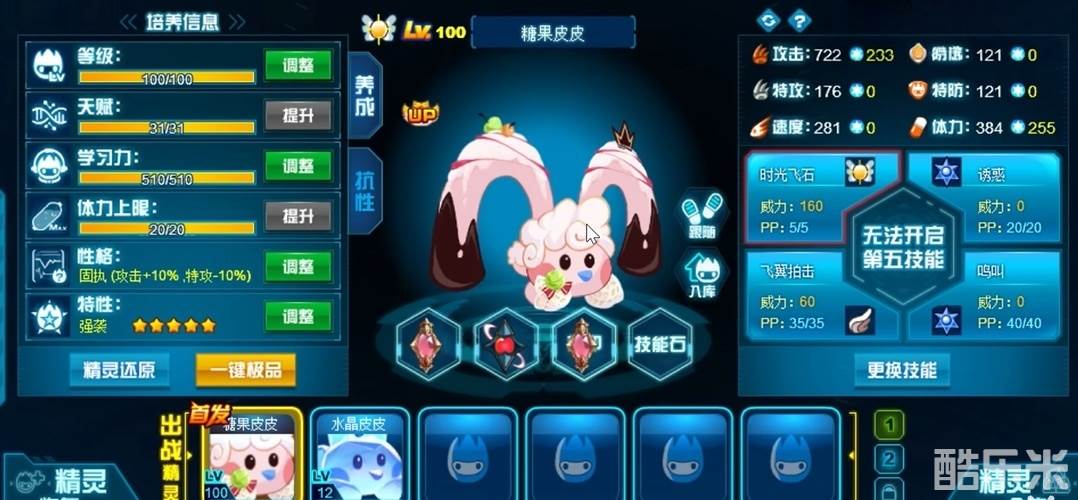 糖果皮皮的飞翼拍击虽然威力不高,但由于其飞行属性与光系搭配,在某些对局中可形成属性穿透。例如在对抗地面或暗影类精灵时,能有效规避部分减伤机制,形成意外输出点。而“鸣叫”与“撞击”虽为基础技,但在技能CD轮转中,仍可承担小额消耗与技能过渡职能。