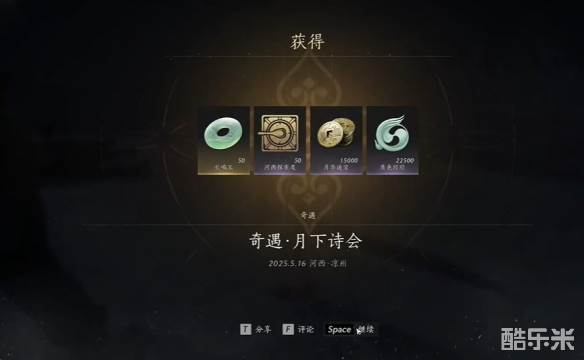 月下诗会这个奇遇需要玩家前往玉池旁边触发,玩家在酉时前往玉池那里找到两个NPC与其进行对话然后对话选择【受降城外月如霜】【一夜征人尽望乡】就可以完成奇遇了。接下来就由酷乐米小编给大家带来了详细的《燕云十六声》月下诗会奇遇攻略!