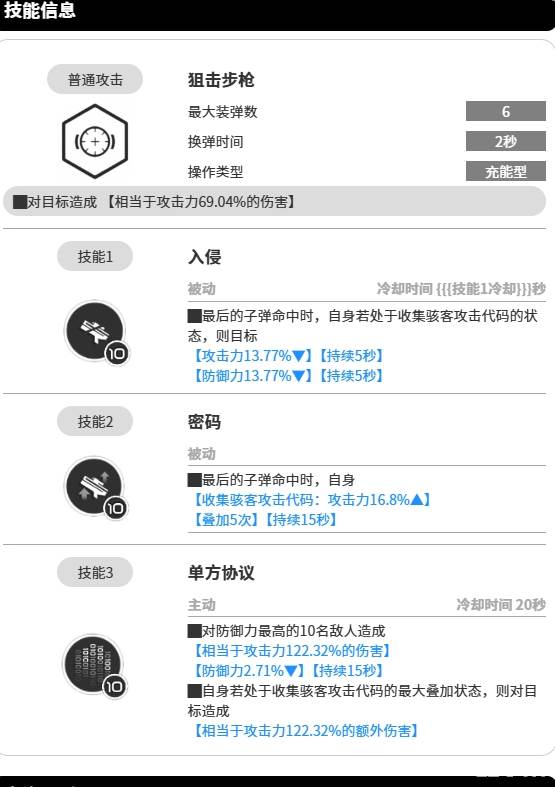 协议解密则是一个与数据入侵可以联动的技能,当数据入侵的增益效果叠满之时,就会马上刷新16.8%的攻击加成,并且这个新增的攻击加成能够与原来的增益效果形成乘算效果,这种叠加效应所产生的威力简直是超乎想象,此时角色的攻击能力将提升到一个前所未有的高度,能够一下子爆发出超强的输出,而单边协定作为艾可希雅的核心大招,更是拥有着最强大的效果。