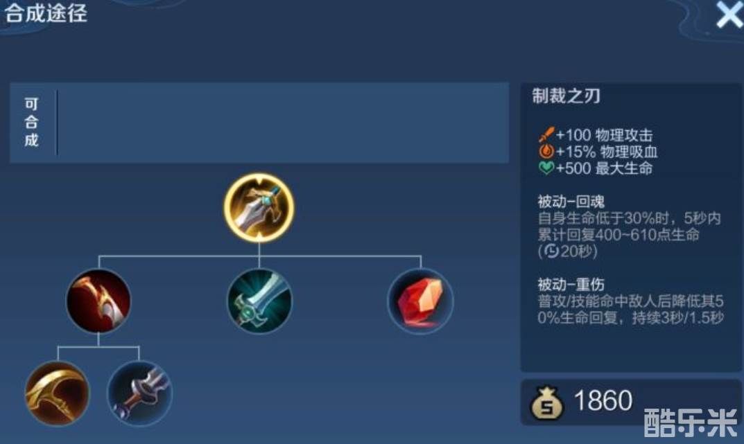 制裁之刃拥回魂和重伤两个被动,回魂效果跟泣刃之血差不多,重伤是普攻或者技能打中敌人后能降低敌人一定的回血和吸血效果,而百分之十五的攻速加成则是为了放大被动的重伤效果。重伤可以说是这把吸血刀的核心,没有内置CD时间限制,不管是普攻还是技能都能持续触发该效果,所以面板配备的百分之十五的攻速就是为了给重伤助力,重伤限制敌方回血其实就是削弱敌方的续航,从而减弱敌人的持续战斗能力,也算是变相增强自身输出。