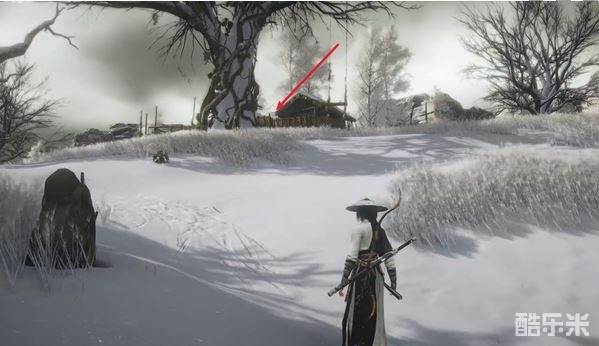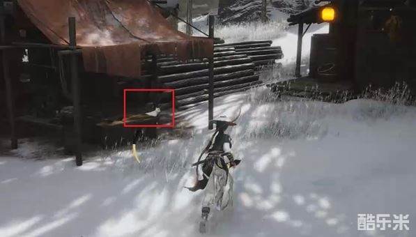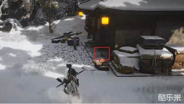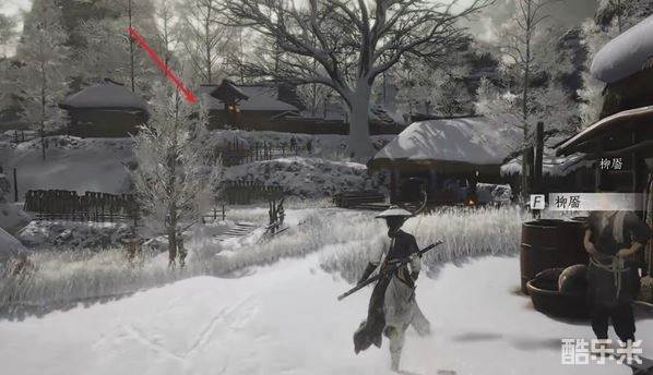 9、走到图中的位置,即可在房子门口看到一个猫戏。