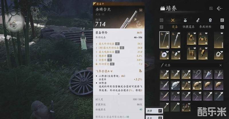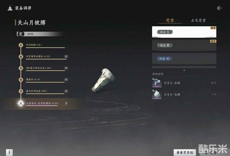 4、拿最贴近本流派的词条的装备去调。比如说我用的是牵丝,就拿词条为“最大或最小牵丝”的装备调律。精准、会心、劲、敏都不容易出现歪的情况(针对牵丝)。