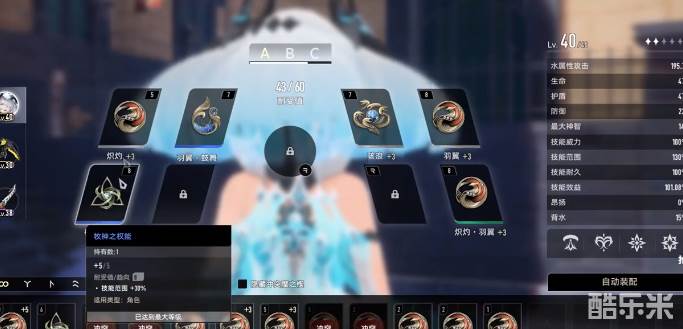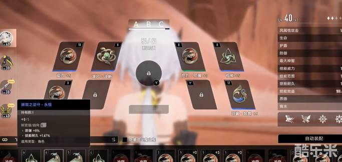 品质也会分成绿色、蓝色、紫色还有金色,品质越高,则意味着属性就越强。升级就可以解锁更多的词条属性,例如增加技能耐久、提升威力,还有降低能耗。系统支持自动装配,但是建议选择手工装备,可以针对角色的技能去定制效果。例如赛琪主要是选择技能耐久,还有最大神智魔之楔,如此就可以有效实现永续飞行,带来较好的效果。
