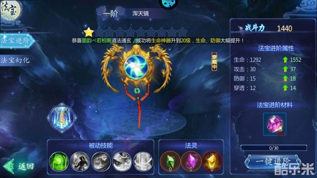 3、对法宝进阶能够大幅提升游戏角色基础属性。