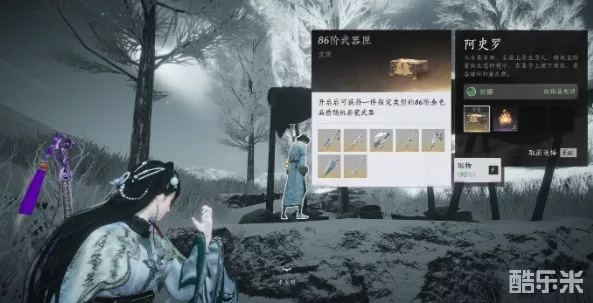 它是在酒泉镇的NPC阿史罗身上。阿史罗表面上是天水集的生意人,实际上正在筹备破坏归唐庆典。我方直接使用偷窃,有概率将阿史罗身上的86武器拿到手。