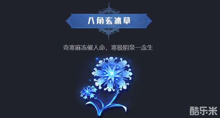第2种仙草的名字叫做八角玄冰草,它的所有属性与烈火杏娇疏都是完全相反的,当玩家站在它的周围时,就会感觉到浑身似乎都被冰冻住了。这种仙草目前只在一个地区生存,那就是寒极阴泉的中心点。八角玄冰草与与烈火杏娇疏是两种相辅相成的仙草,当小伙伴们需要进入冰火两仪眼时,就需要同时服下这两种仙草,质量原本两种互相排斥的毒素才能够转变为相辅相成,而同时对于体质属性也有奇效。