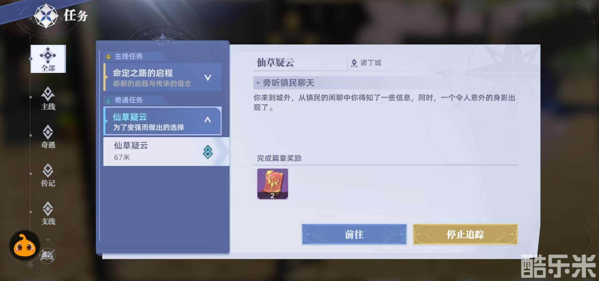 大陆纪行有一些奇遇任务,可以在地图上标记蓝色问号的地方探索触发奇遇任务,体验更丰富的剧情,获取更多惊喜奖励