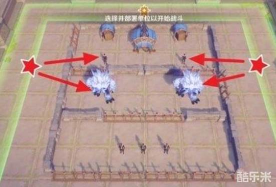 1、开始战斗前,在界面两侧分别部署2组丘丘萨满。
