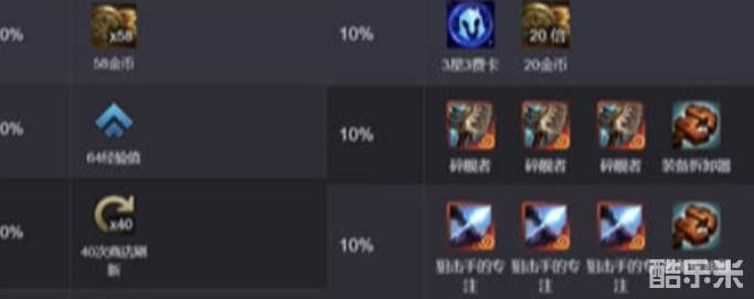· 10% 3星3费卡、20金币