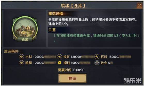 仓库可在建设用地上建造,可额外提高势力的资源存量上限