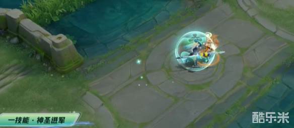 2、一技能·神圣进军:释放后身上出现绿色护盾,并且顶部还有图案。