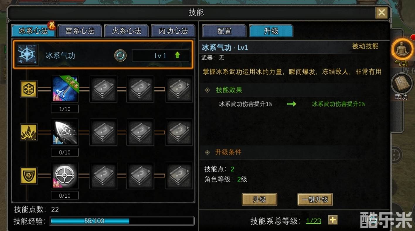 前期装备以有什么就用什么为主,不用过于追求,待等级高后解锁了后续的玩法可以慢慢地去刷。在心法的选择上,可以选择游戏所推荐的冰系,该类型的心法对弓箭手的加成很大,也很适合多种练级环境,在大部分副本中也有着优异的表现。