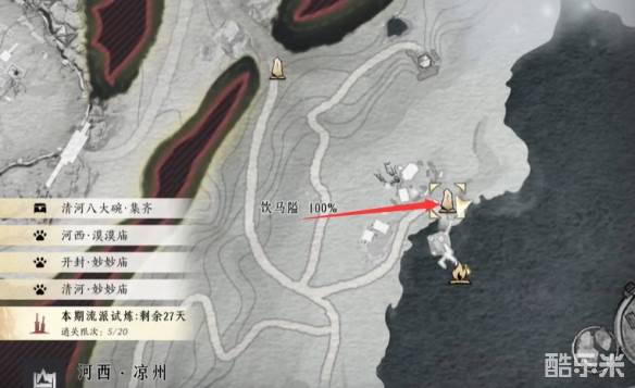 1、玩家先传送到饮马隘右边的传送点这里。