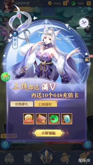 2、随后领取上线奖励,送满V再送10个648充值卡。
