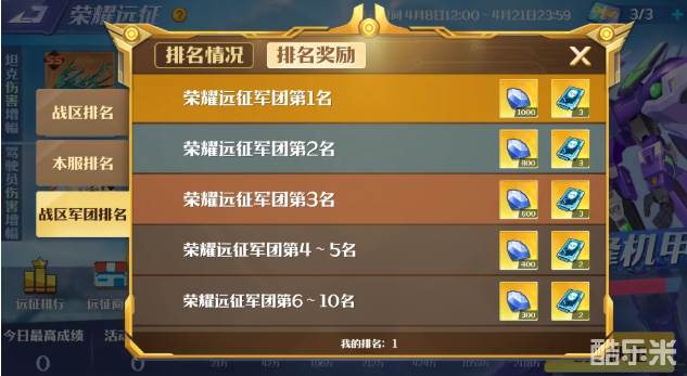 荣耀远征是这个游戏最大的福利活动之一,所有奖励全部是免费给的,不要氪金也不需要钻。每天可以打无数次,只有前3次有每日奖励。每天只记录最高的那一次分数;多日最高分数累加就是你的最终成绩。