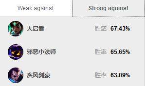从胜率的走势图中,可以明显看出她长期占据着上单胜率榜前二的位置,这个版本更是直接登顶力压大部分强力上单。
