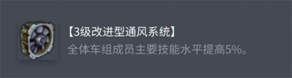 实战意义:属于全能型提升,对整车性能均有稳定加成,适用于大多数战斗环境。