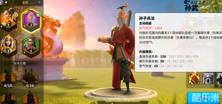 主将不仅决定了部队的核心属性,还能通过技能改变战局走向。橙色品质的武将更适合作为主将,因为他们拥有更高的基础属性和更强的技能效果。不过具体选谁还得看咱们手头的资源和培养进度,毕竟每个武将的定位和适用场景都不太一样。比如步兵系的理查一世和查理马特就是非常扎实的主将选择,骑兵系的源义经和曹操也表现突出,弓兵系的李成桂虽然专精单一但输出爆炸。下面和酷乐米小编一起来看看吧