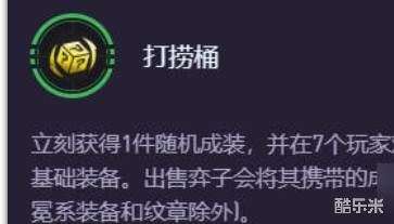2、打捞桶的效果为立刻获得1件随机成装,并在7个玩家对战回合之后提供1个基础装备。出售弈子会将其携带的成装拆分成基础装备(冠冕系装备和纹章除外)。