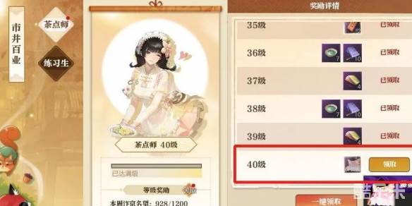 3、当等级来到40级的时候打开【奖励详情】,选择领取40级的奖励;