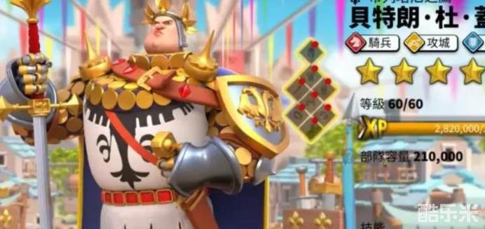 贝特朗是定位为攻城的骑兵将领,碎片的入手方法是最强执政官。主动技能名为战意高昂,在接下来三秒的时间内,自己每次使用普攻时就会有百分百概率对目前部队造成一次直接伤害,系数最高为七百点。伤害其实比较中规中矩,没有特别大的两点,唯一的优点就是会随着普攻释放,触发几率比较高。还会减少敌人二十点的怒气值,让目标无法顺利的释放出怒气技能,相当于增强了我方的生存能力。下面和酷乐米小编一起来看看吧