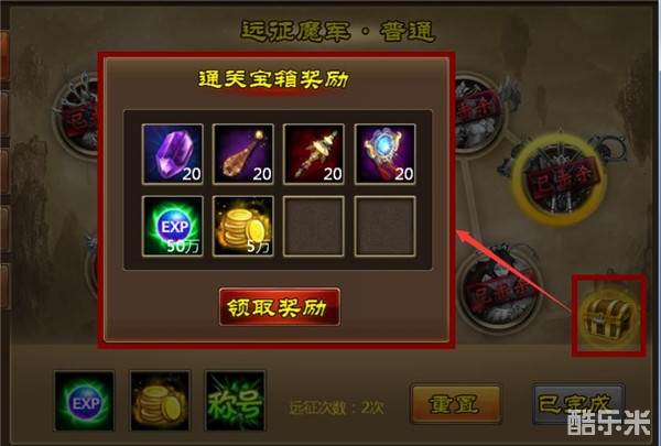 远征副本固定9个关卡,最后通送有通关宝箱。