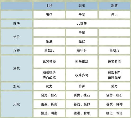 核心组合:张辽(主将)+ 于禁 + 乐进/徐晃