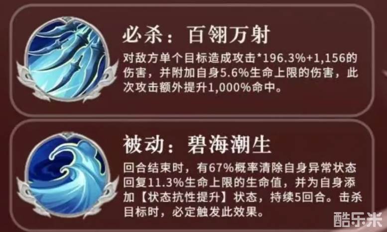 孙策的定位是单点爆发型角色,他拥有两个颇为实用的被动技能,第一个被动技能的效果是在每个回合结束之后,而且对于负面的效果也有清除的效果,这里不想限制角色能力清除还是很有用的,而孙策这个技能就如同自带了一层净化屏障,能有效保证自身状态的良好,不仅如此该技能还能提高自身的血量上限,让他在面对敌方攻击时也不是很惧怕对面的克制技能。