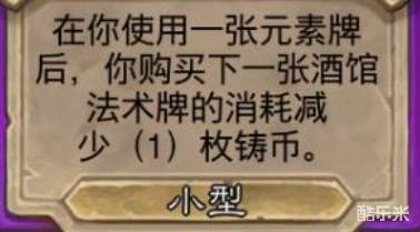 效果:在你使用一张元素牌后,你购买下一张酒馆法术牌的消耗减少(1)枚铸币。