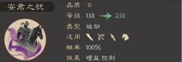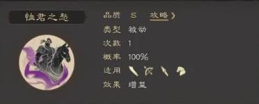 释放概率提升:自带主动技能释放概率提高8%(受武力/智力较高项影响),每次释放后主动技能伤害提高15%(可叠加);
