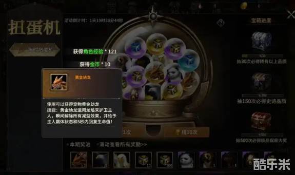 黄金幼龙需通过限时扭蛋机抽取获得,由于获取概率仅为0.15%,游戏为此设置了保底机制,玩家保底抽取必定能获得黄金幼龙,用于抽取的扭蛋币,可通过完成日常活跃任务积累,参与特定限时活动也有机会获取,若想快速获取也能使用游戏内货币,在活动界面直接购买扭蛋币,随后转动扭蛋机就有机会将黄金幼龙纳入麾下。