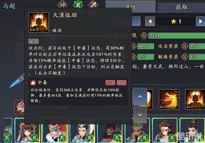 对于有条件的玩家来说,在输出手的选择上,还可以考虑用马超来替代原有的武将,马超所拥有的被动技能,对于处于中毒状态的敌方来说,一旦触发将会对敌人造成额外的伤害,还有郭嘉在队伍中主要是治愈,他能够清除己方队友身上的异常状态,更为重要的是郭嘉与贾诩之间还能够激活羁绊效果,当郭嘉施展净化技能时,不仅能够让队友们恢复一定的血量,还能提升整个队伍的伤害减免能力。