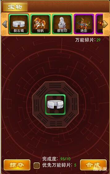 掠夺:消耗精力,获得大量的装备碎片,宝物碎片,合成强力装备和宝物。