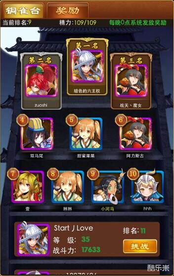 铜雀台:消耗精力,可挑战其他玩家,获得大量声望和宝箱奖励。