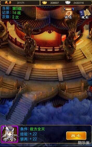拒敌:挑战自我,突破极限,可根据自身实力爬塔,排名前50会获得更多奖励。