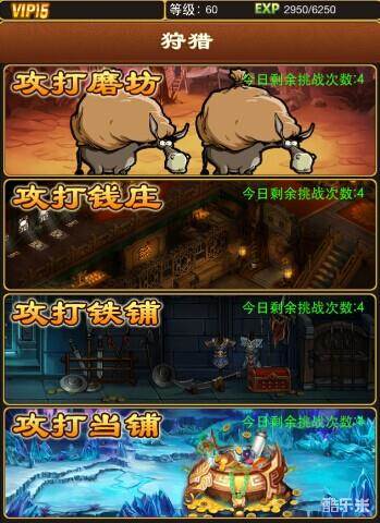 狩猎:每日必做活动,每个小副本可攻打3次,难度一般,奖励丰厚。