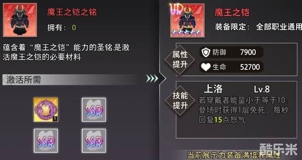 《梦的第七章》UR装备魔王之铠属性介绍: