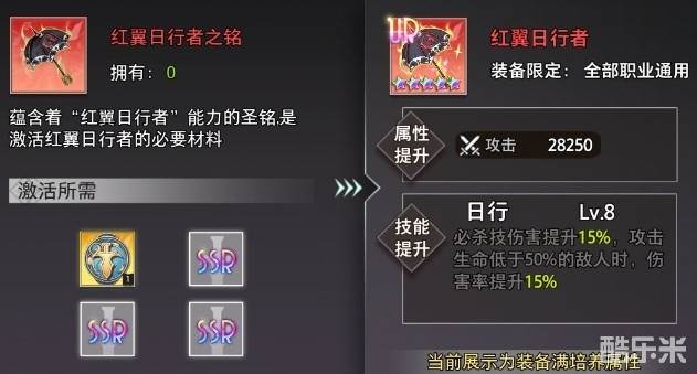 《梦的第七章》UR装备红翼日行者属性介绍: