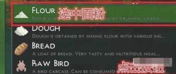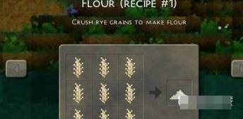3、点击绿色按钮后,就显示游戏中的各种物品,随便选中一个物品(这里以面粉为例),点击右下的按钮(有些物品不需要合成是自然长成的,此按钮就不能点)就能显示出该物品的详细合成表。
