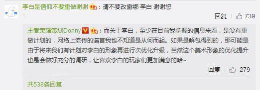而策划也表明了自己这边的态度:在短时间内没有计划。对李白进行重做。