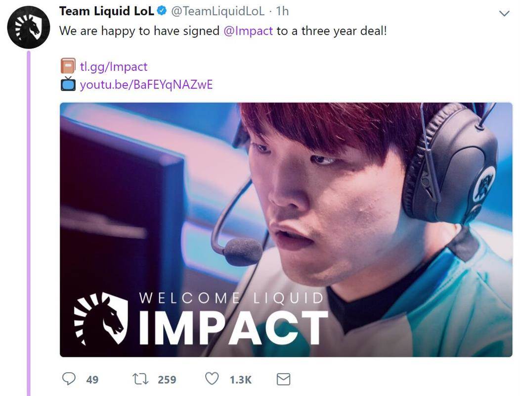北京时间29日凌晨,Team Liquid官方twitter宣布与Impact签订了3年的合同。据称,Impact与TL的合同年薪达到了100W美元。