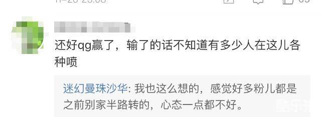这位昵称为“爱吃柚子的松果”的网友评论道:“还好QG赢了,输了的话不知道有多少人在这儿各种喷。”
