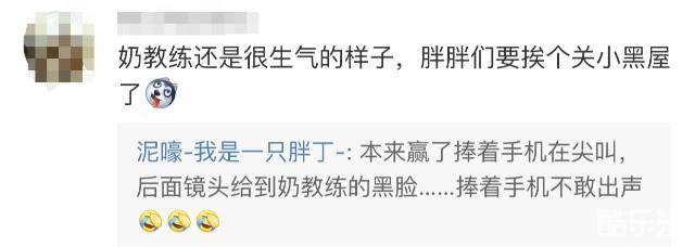 这位昵称为“Mr_Restless”的网友评论道:“奶教练还是很生气的样子,胖胖们要挨个关小黑屋了。”
