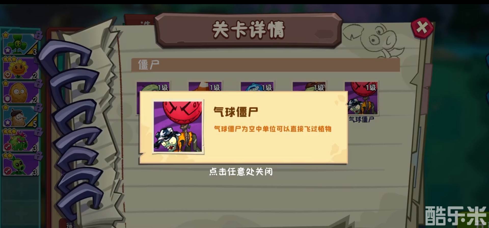 气球僵尸:气球僵尸可以直接利用飞行能力越过植物,不过想要克制它也不难,只要将仙人球和三叶草组合就可以了。三叶草的吹风能力配合仙人球的刺可以击破气球僵尸的气球,这样就能防止它们越过植物。
